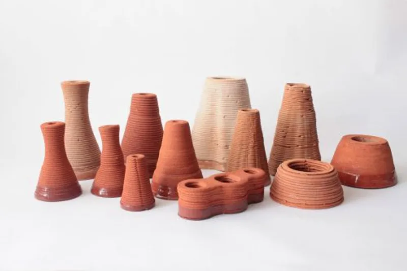 The Barro de Café project reuses coffee grounds to create a sustainable ceramic material. By mixing the grounds with clay and water, a paste is obtained that, when fired, produces lightweight and porous ceramic. Although more fragile than conventional ceramic, its strength has been improved through structural design techniques.